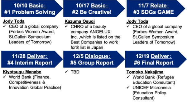また、全6回で構成されているSDGs PBLですが、毎回のプログラムで素晴らしい超豪華ゲストにお越しいただいていました。